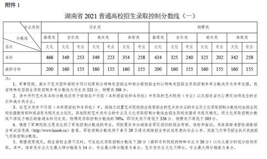 2021年普通高考艺术类、体育类本科批次录取控制分数线确定。艺术类(不含戏剧与影视学类):324分;艺术类(戏剧与影视学类):463分;体育类:446分。